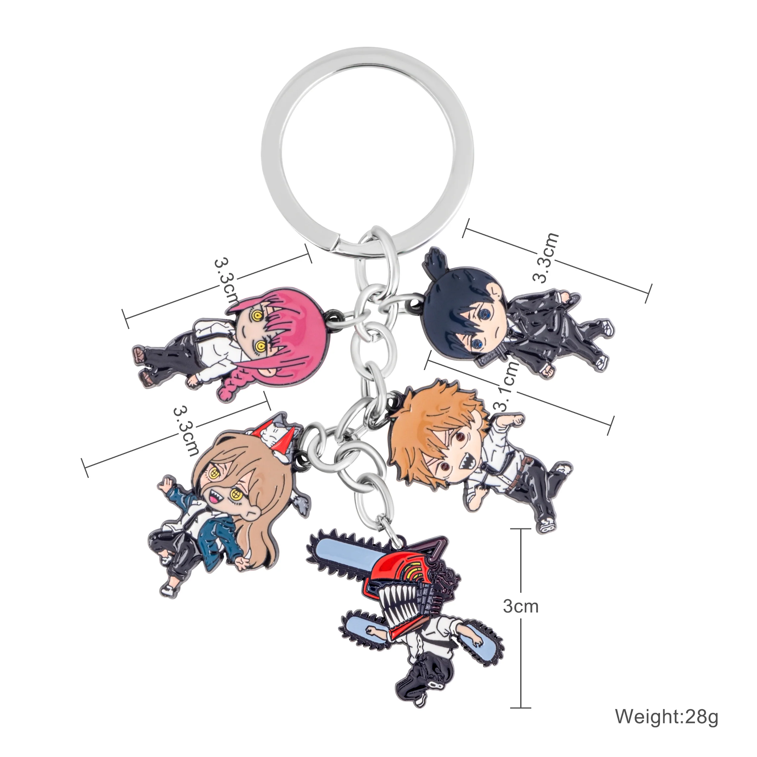 Celebrate the chaotic world of Chainsaw Man with this keychain featuring small charms representing Makima, Power, Chainsaw Man, Denji, and Aki. Each charm is meticulously designed to capture the essence of these unforgettable characters, from Makima's mysterious allure to Power’s wild energy, and Denji’s relentless drive.