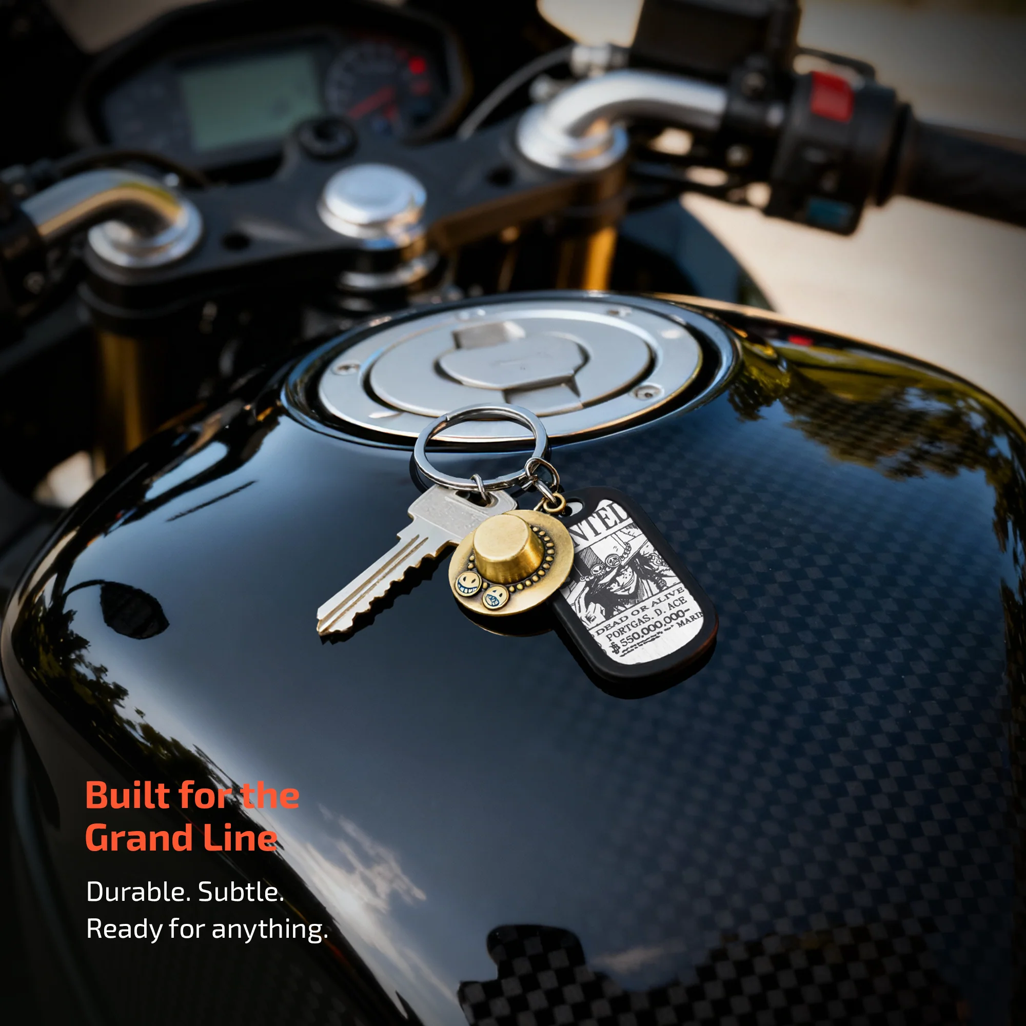 Pay tribute to the legendary Portgas D. Ace with this keychain featuring a dog tag engraved with his iconic wanted poster and a charm of his signature hat. This design captures the fiery spirit and indomitable will of Ace, making it a must-have for any One Piece fan who admires the fearless pirate.